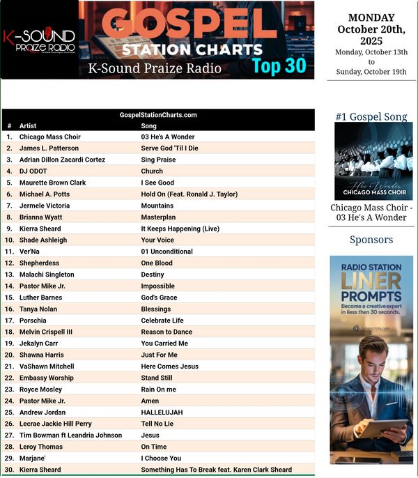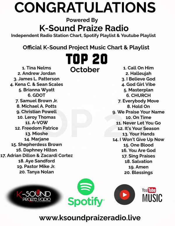 Congratulations to the Top 30 Artists who made the Official K-Sound Praize Radio Chart